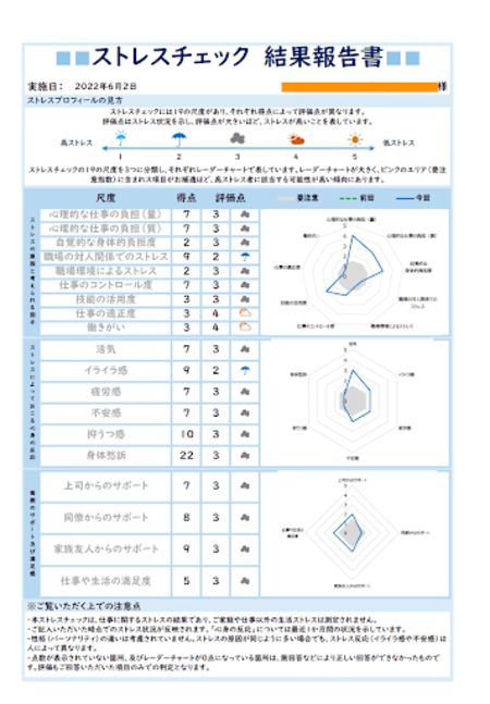 ストレスチェックの結果票のサンプルを以下に掲載します。